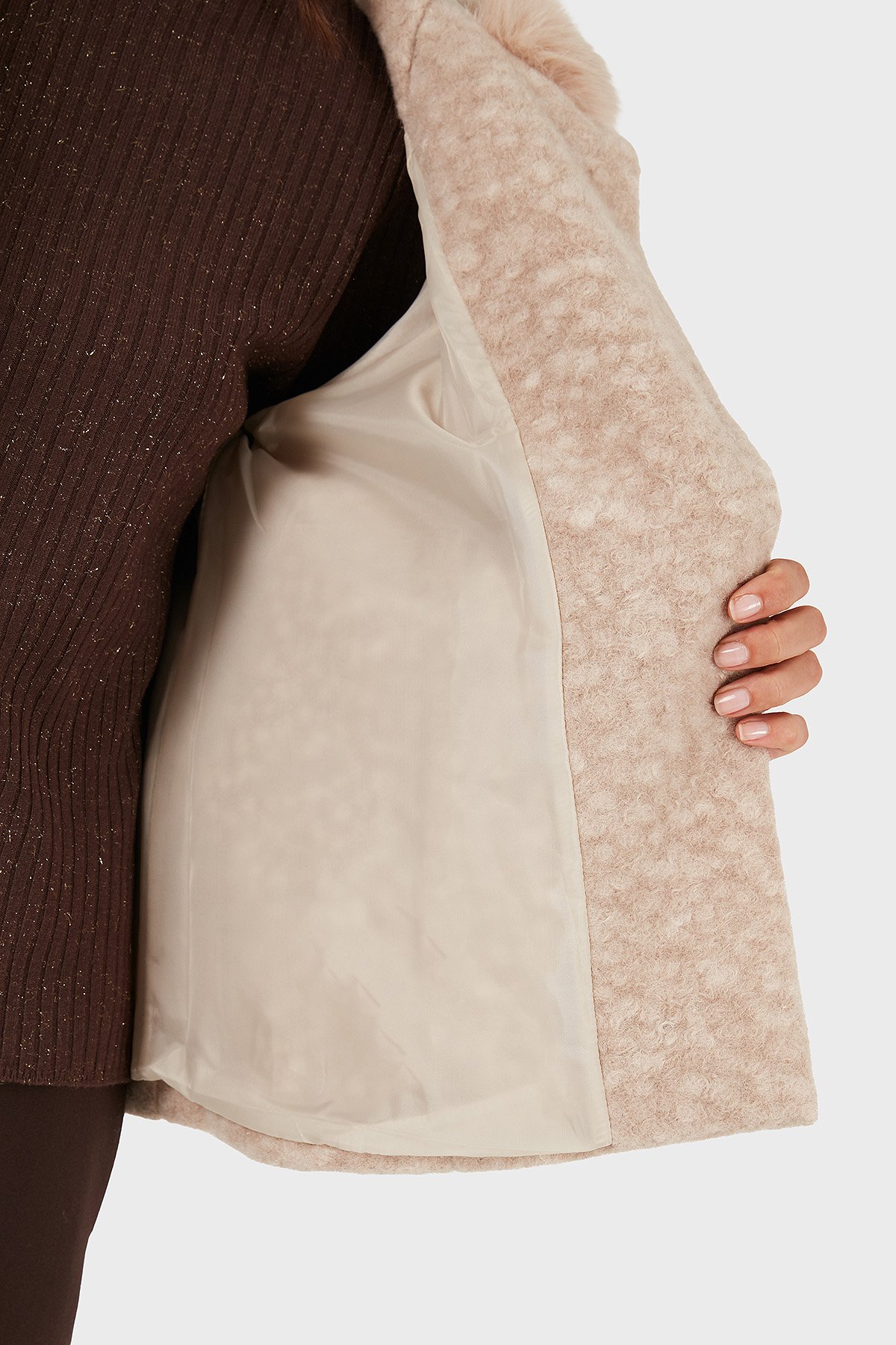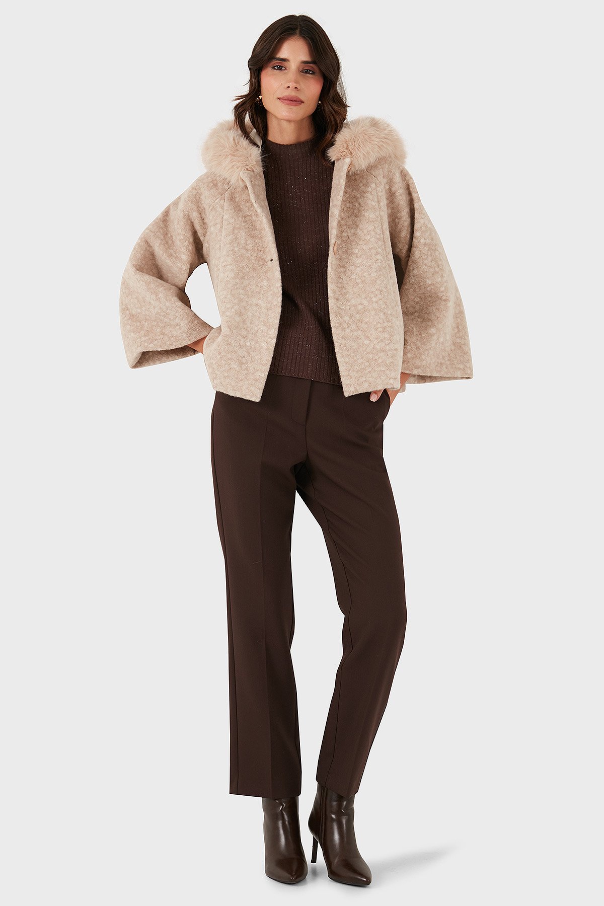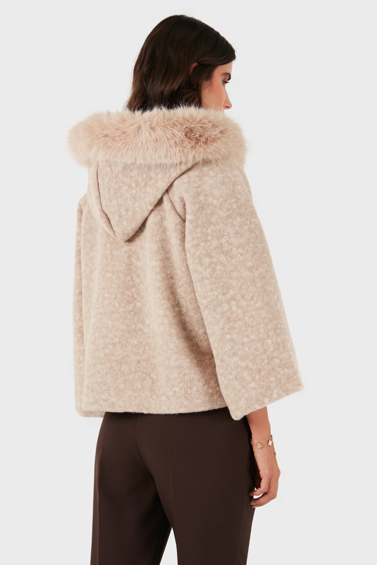 Oversize Yumuşak Tüylü Kapüşonlu Truvakar Kol Astarlı Bayan Mont 690919 BEJ
