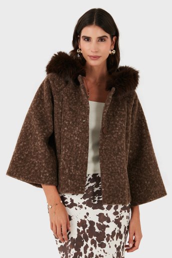 Oversize Yumuşak Tüylü Kapüşonlu Truvakar Kol Astarlı Bayan Mont 690919 KAHVE