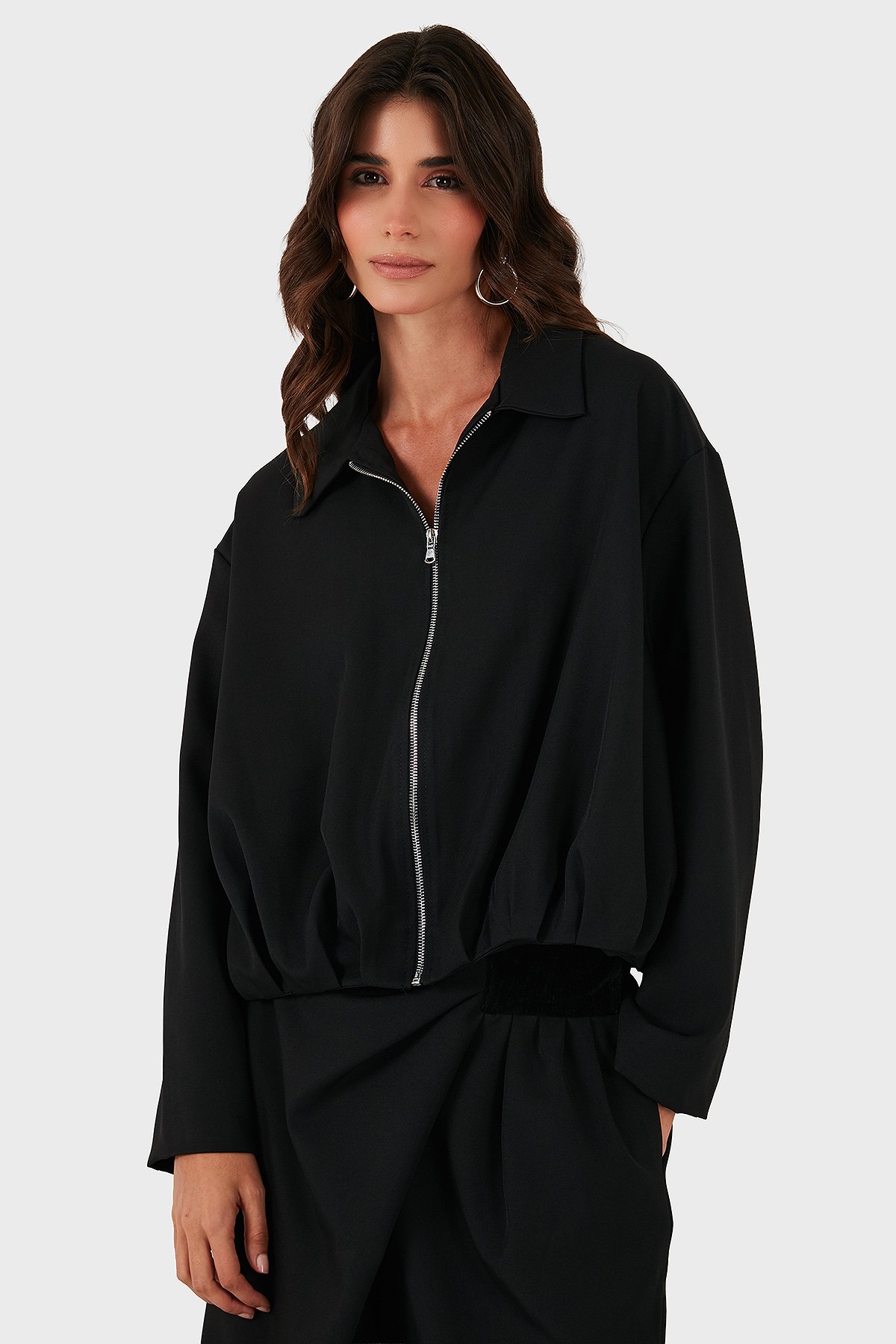 Regular Fit Gömlek Yaka Fermuarlı Bayan Ceket 268755688 SİYAH