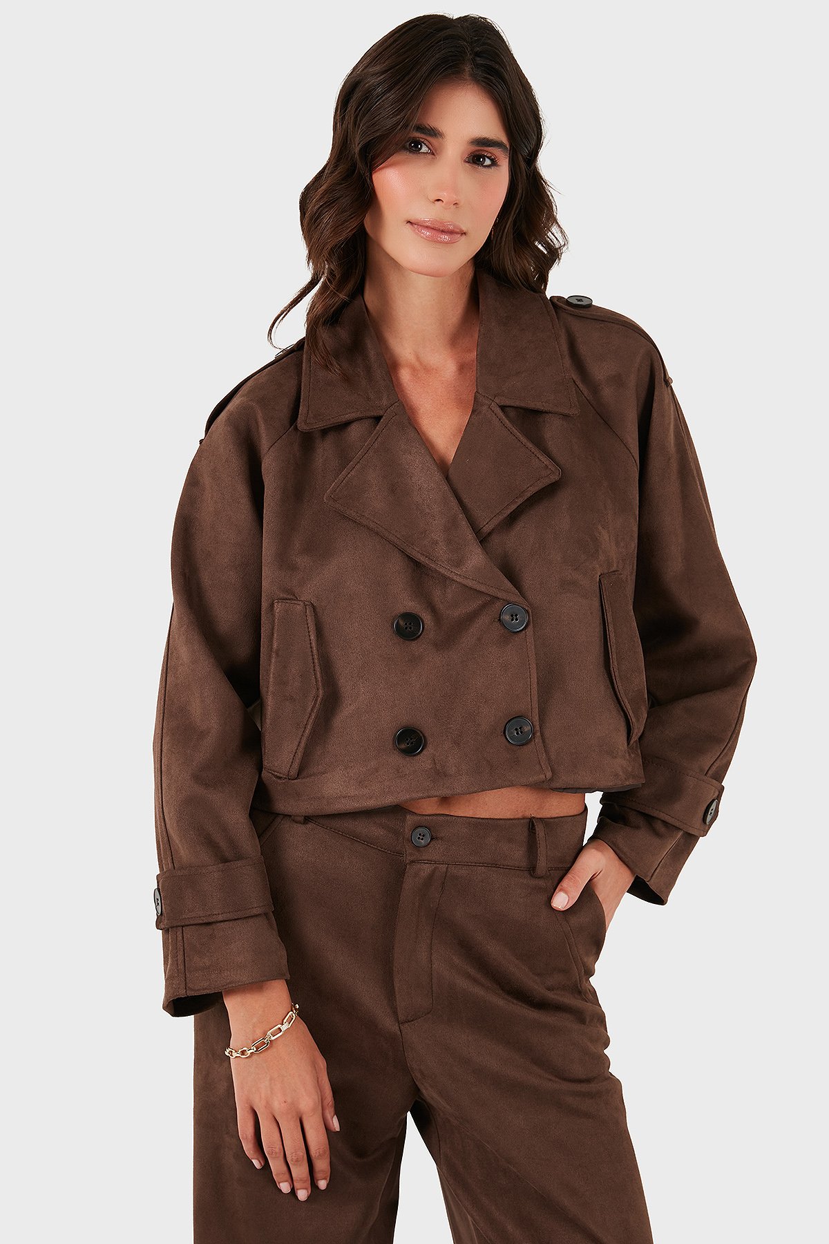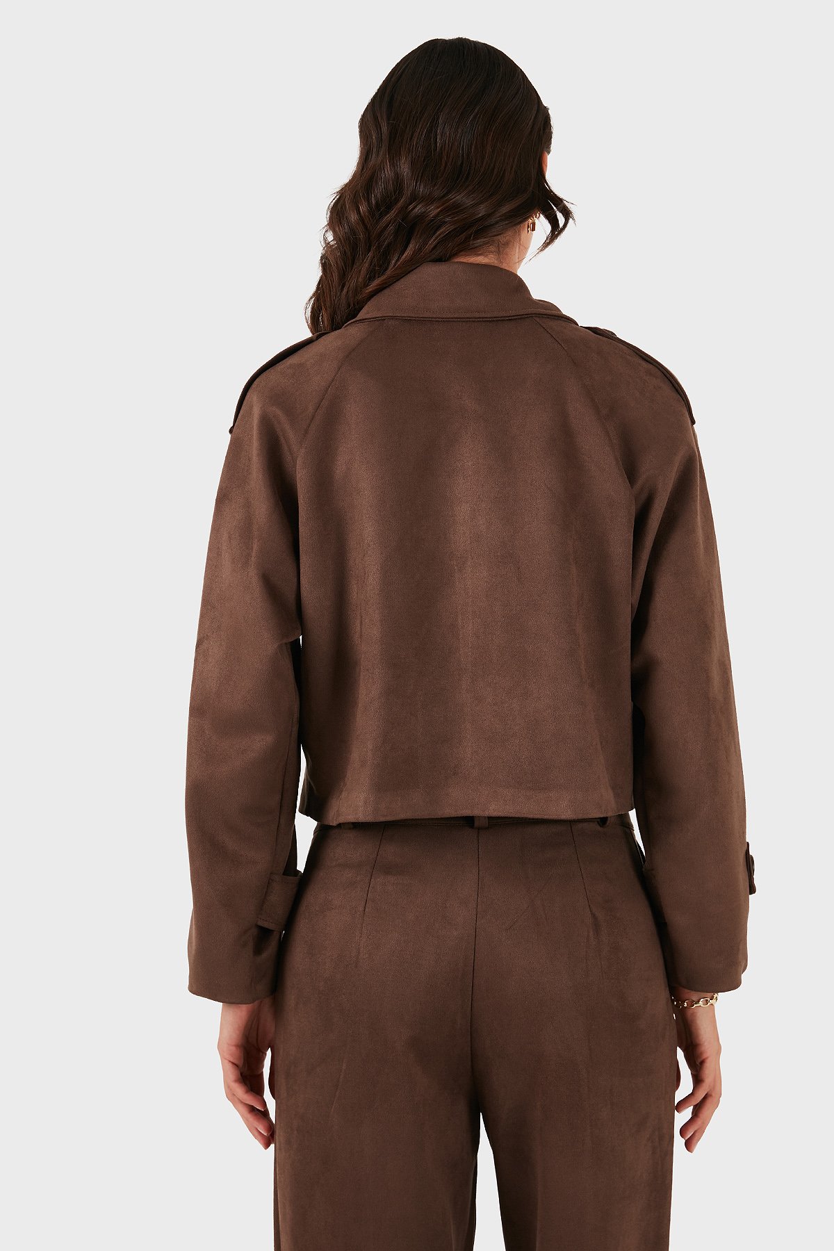 Regular Fit Kruvaze Yaka Kısa Süet Bayan Ceket 68620513SUEDE KAHVE