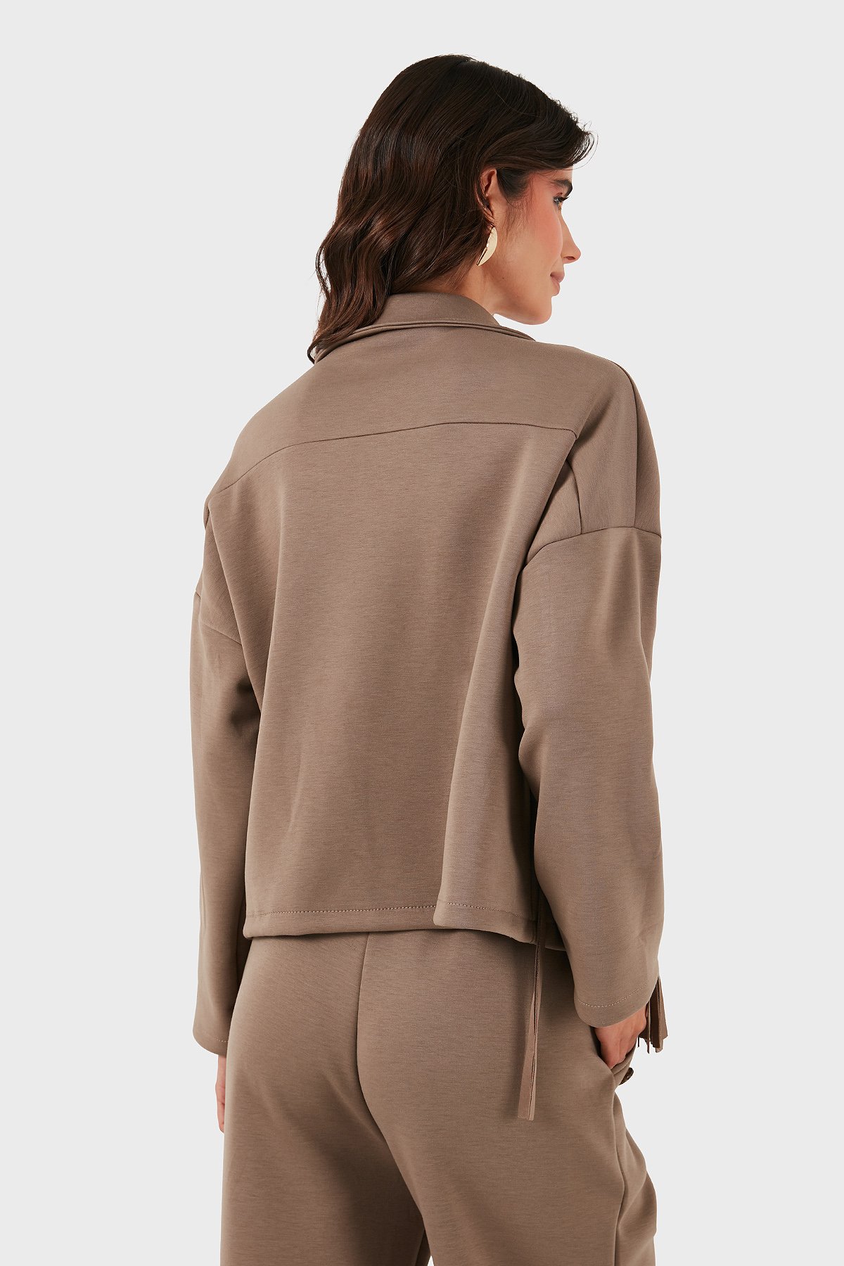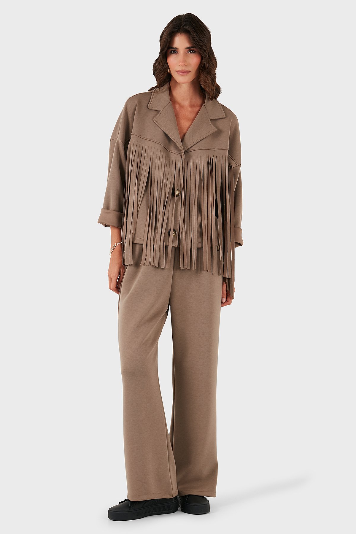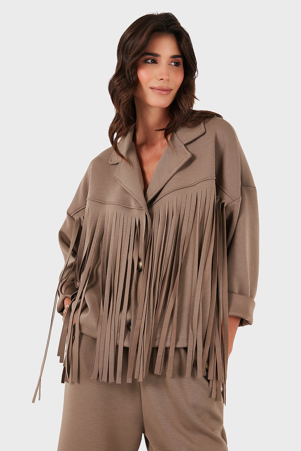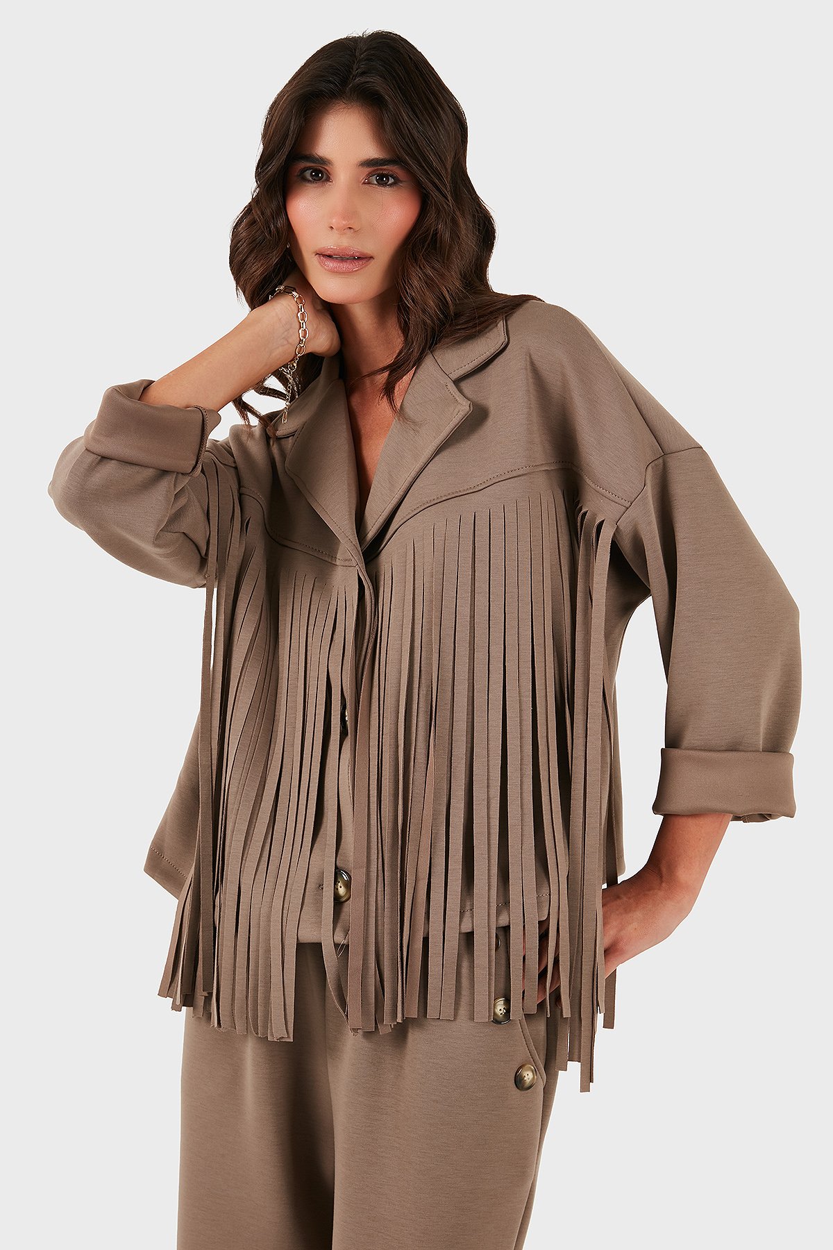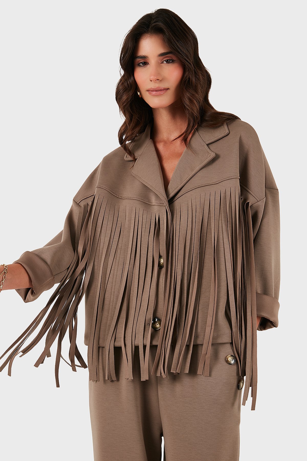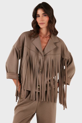 Regular Fit Kruvaze Yaka Püsküllü Bayan Ceket 68821795 VİZON