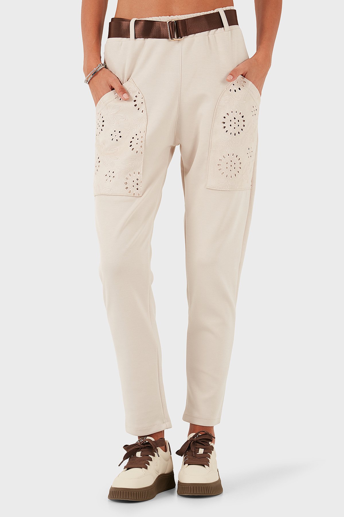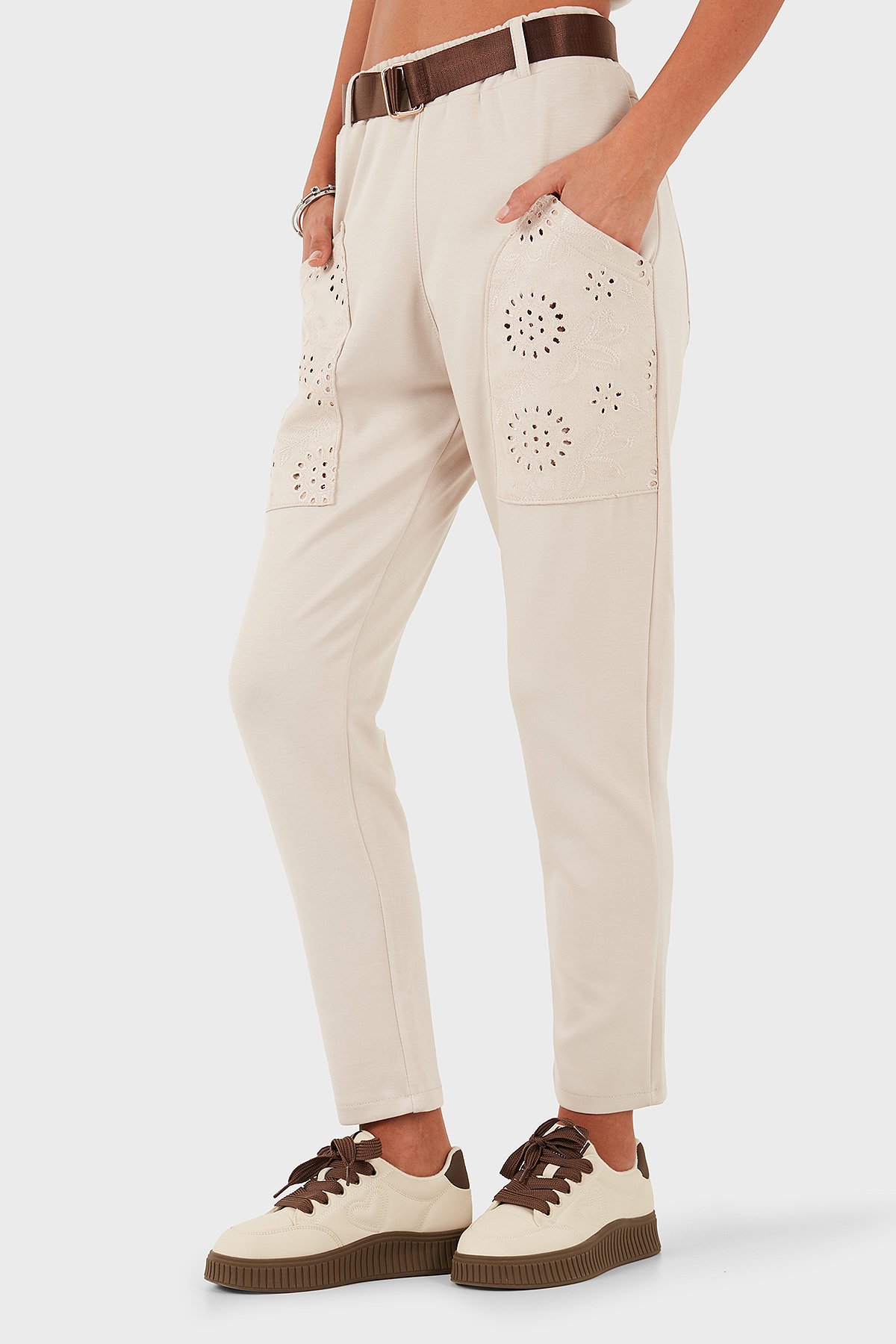 Regular Fit Normal Bel Cep Detaylı Bayan Pantolon 69144030 BEJ