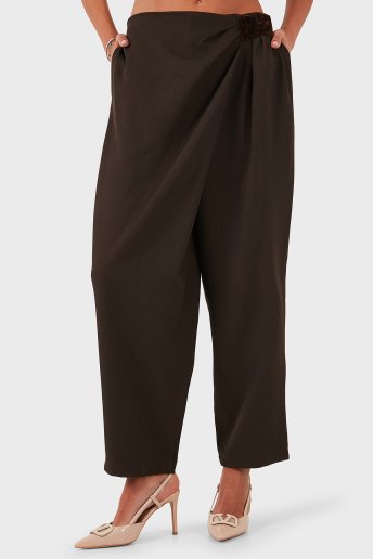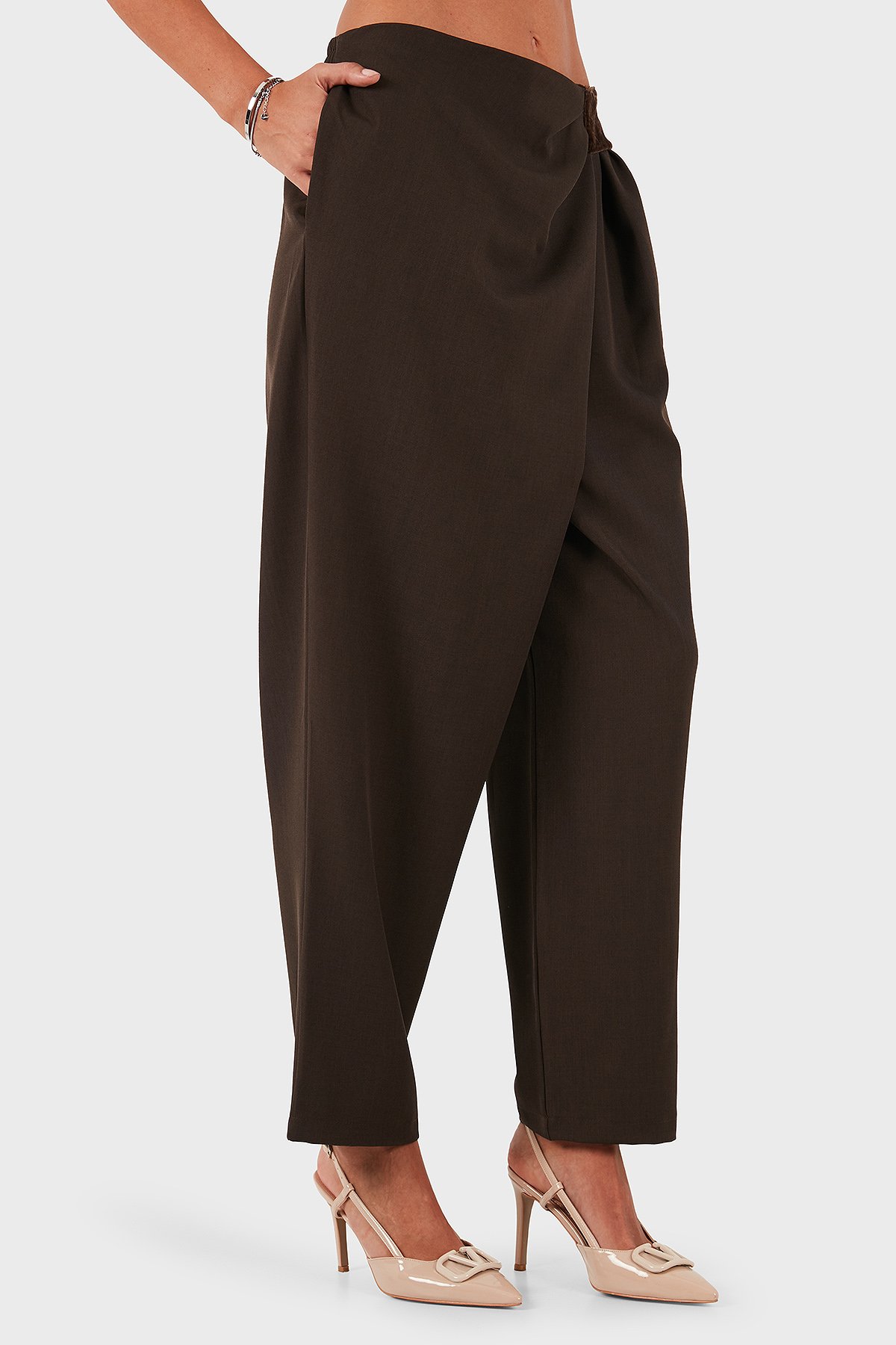 Regular Fit Normal Bel Geniş Paça Bayan Pantolon 2687557721 KAHVE