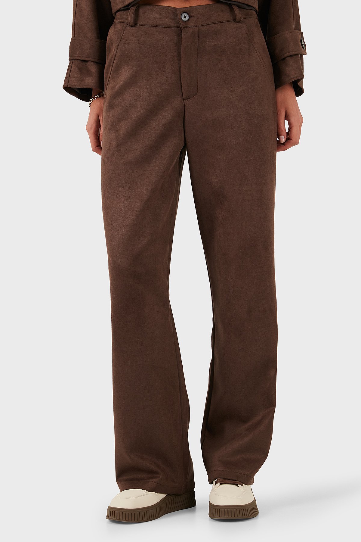 Relaxed Fit Normal Gel Geniş Paça Süet Bayan Pantolon 68672644SUEDE KAHVE