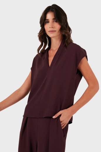 Relaxed Fit V Yaka Kısa Kollu Bayan Bluz 268755088 BORDO