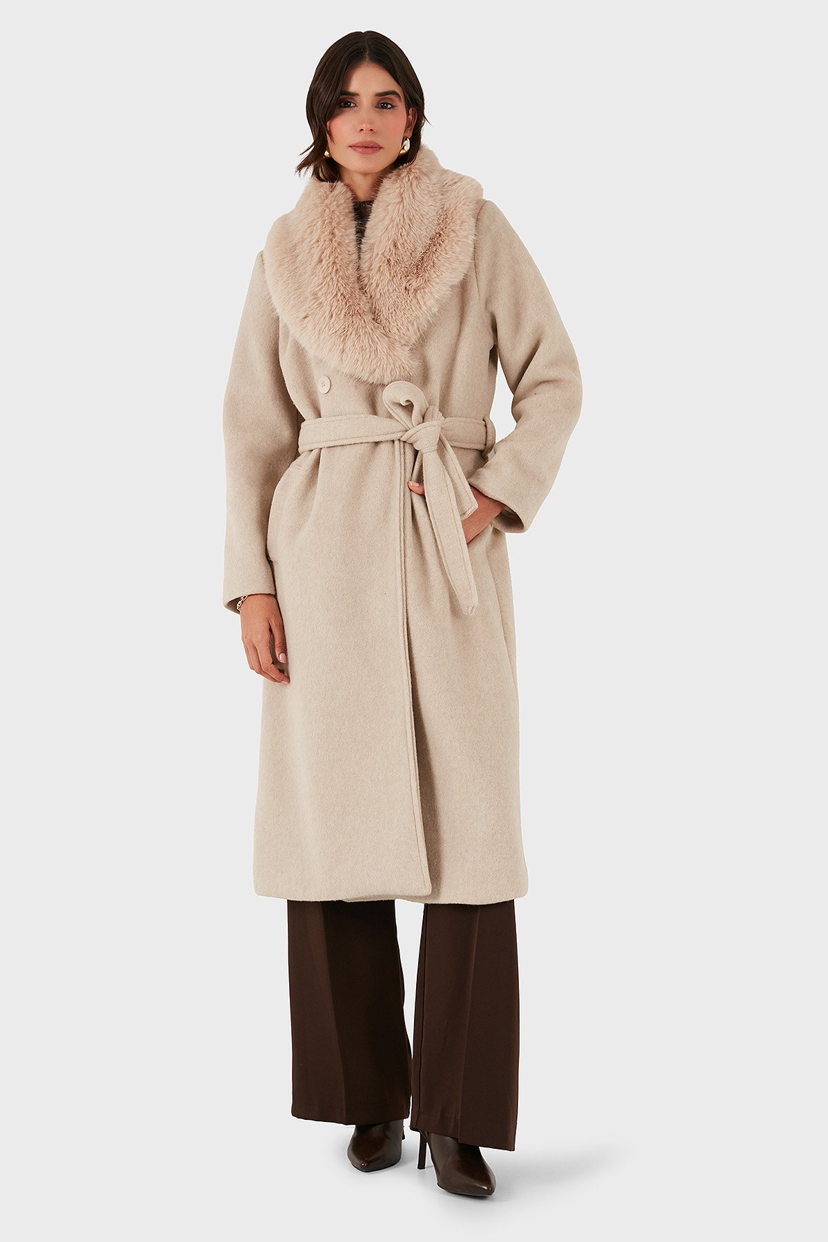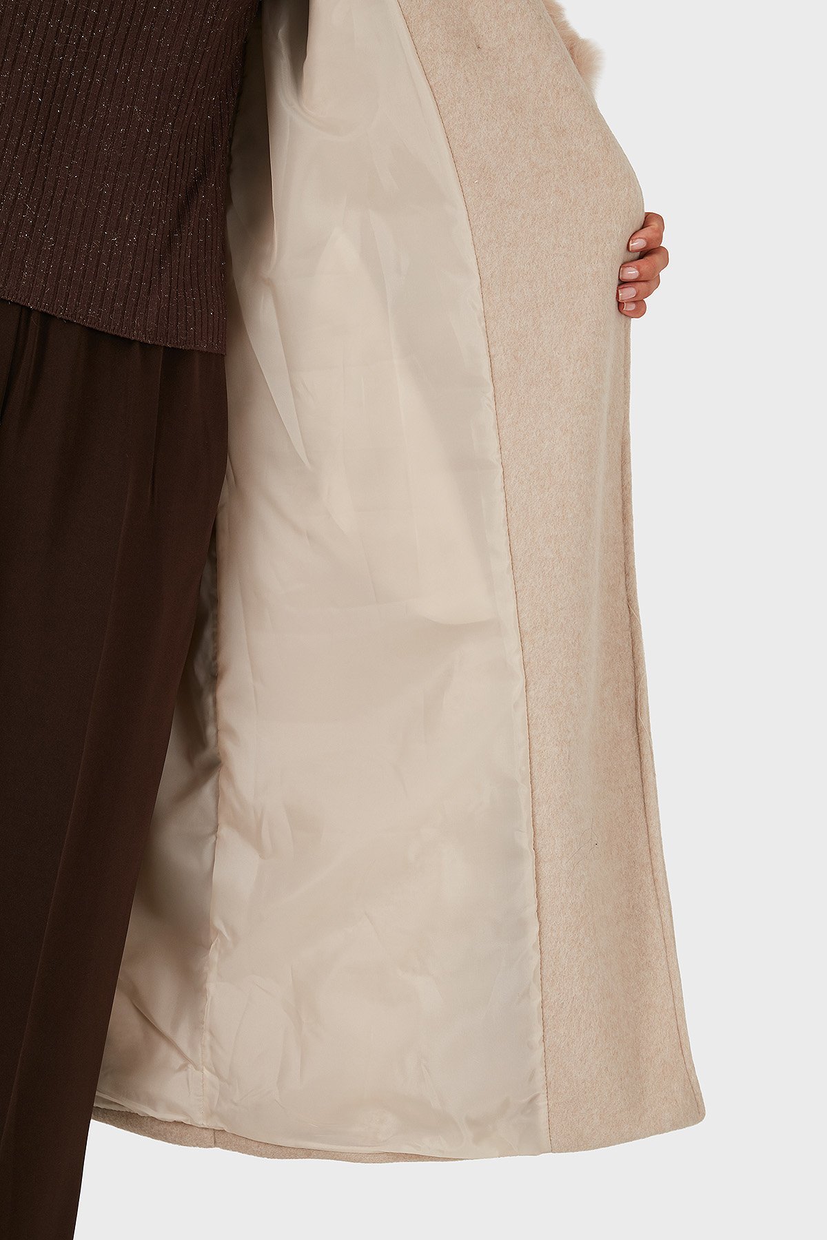 Relaxed Fit Yumuşak Tüylü Şal Yaka Bayan Kaban 6909660 BEJ