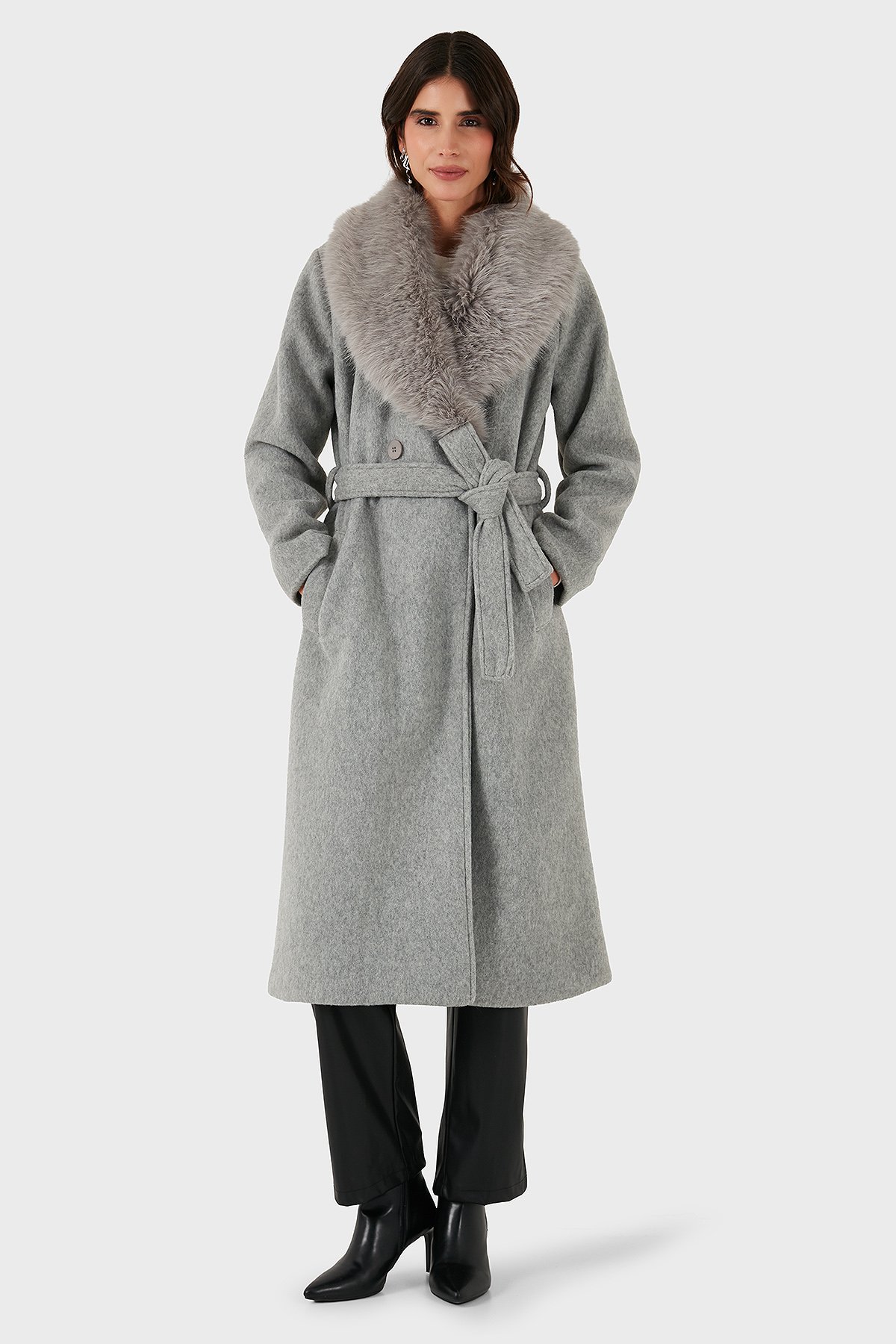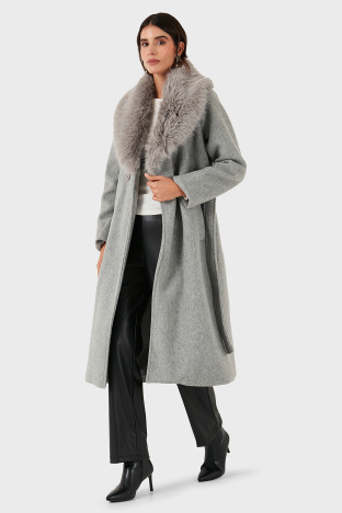 Relaxed Fit Yumuşak Tüylü Şal Yaka Bayan Kaban 6909660 GRİ