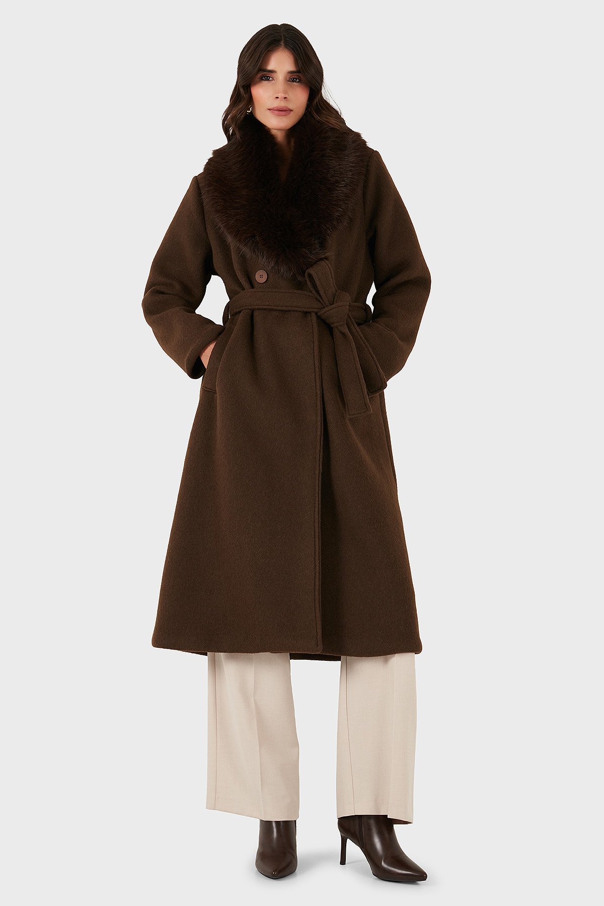 Relaxed Fit Yumuşak Tüylü Şal Yaka Bayan Kaban 6909660 KAHVE
