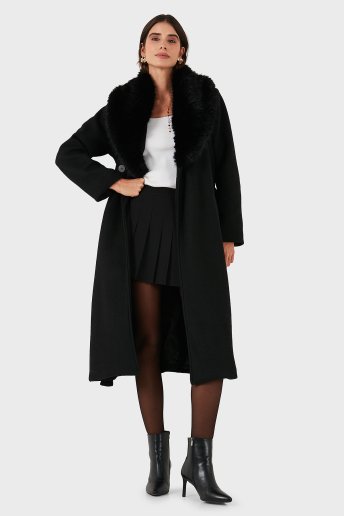 Relaxed Fit Yumuşak Tüylü Şal Yaka Bayan Kaban 6909660 SİYAH