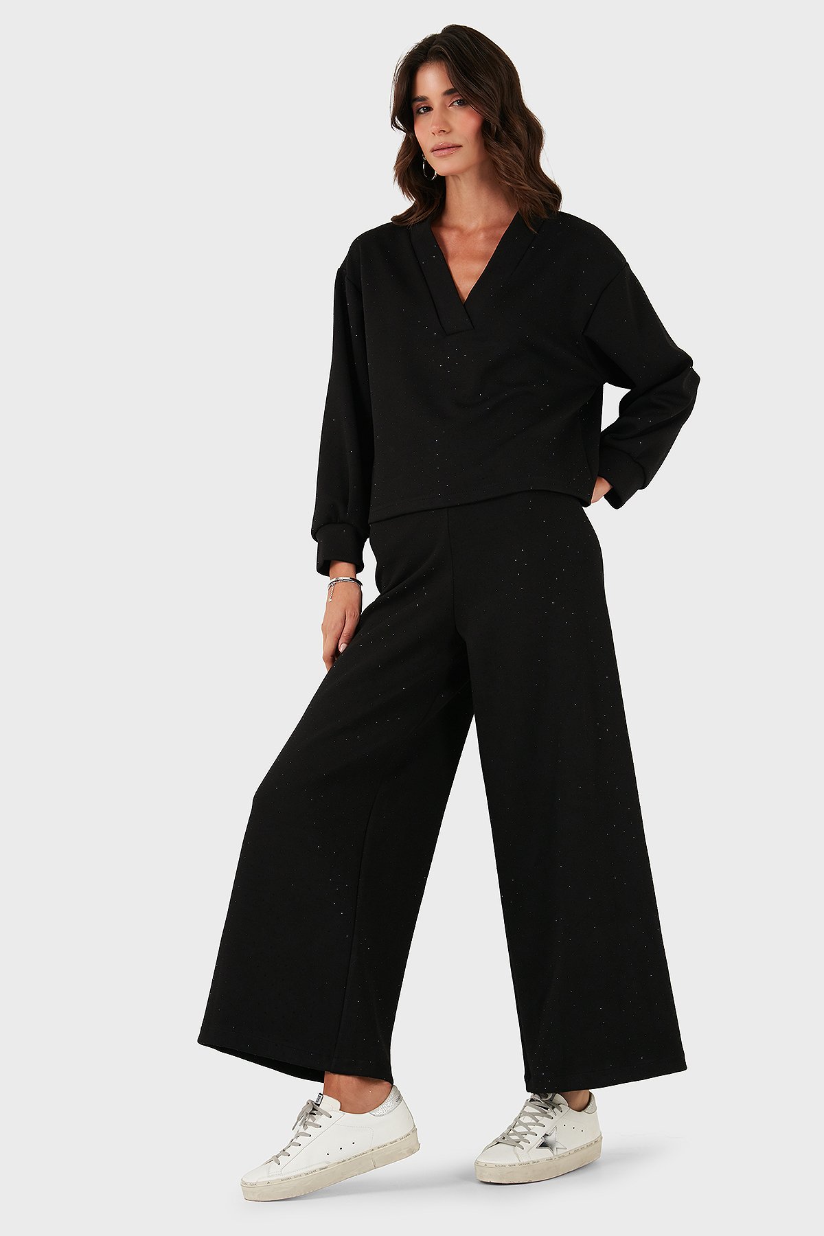 Taşlı Regular Fit Normal Bel Geniş Paça Bayan Pantolon 268793735 SİYAH